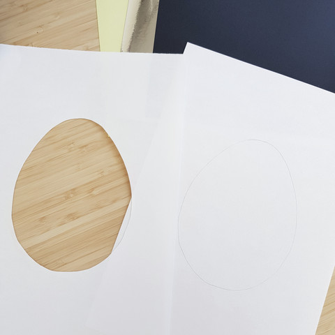 Using the other sheet of paper with the egg template, cut out egg shape with a knife or scissors (adult should do this step).