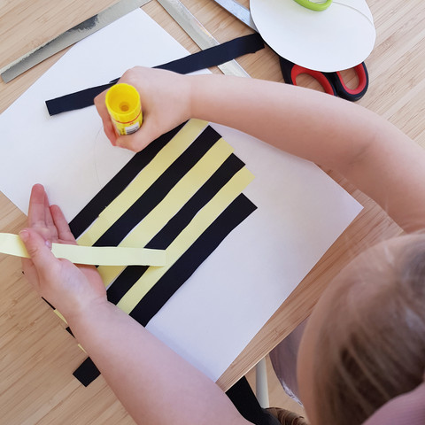 Cover entire egg with several strips or shapes of paper, gluing them down as you go. (For younger toddlers it's easier to place glue over the entire egg shape first). Cut around the egg to get rid of all of the excess paper.